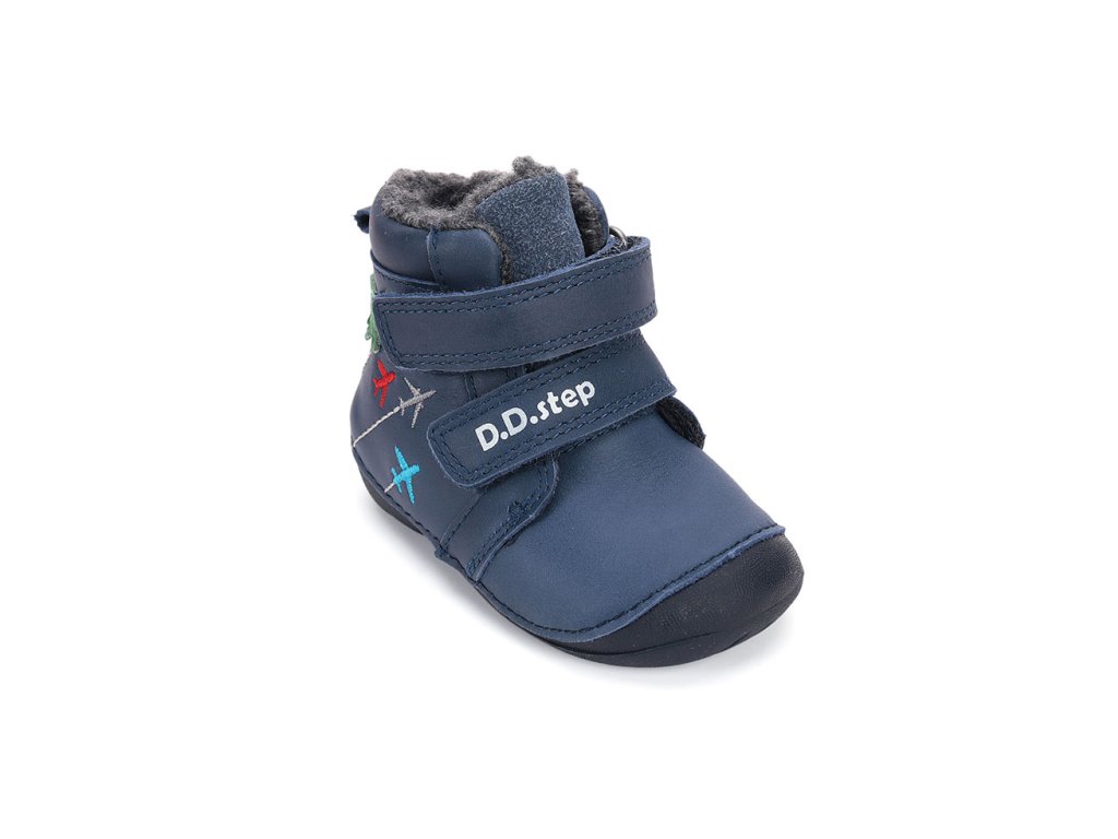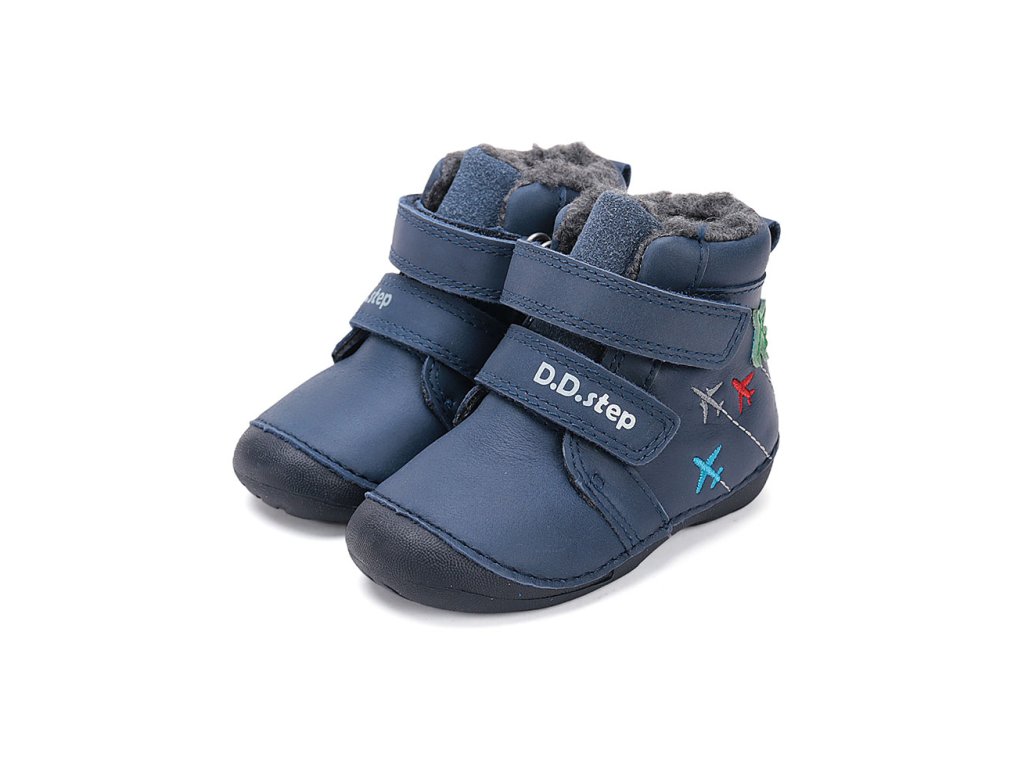 DD Step zimná detská obuv s podšívkou v hnedej farbe, s dekoráciou na boku.
