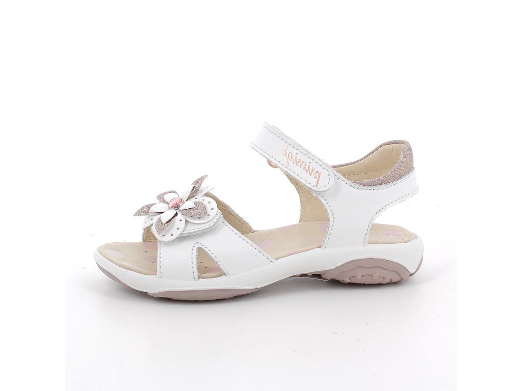 Elegantné dievčenské sandále značky Primigi s kvetinovou aplikáciou vpredu. Pohodlné, ľahké a priedušné, ideálne na letné dni. Majú dvojité zapínanie na suchý zips a mäkké polstrovanie v oblasti päty, ktoré zabraňuje treniu.