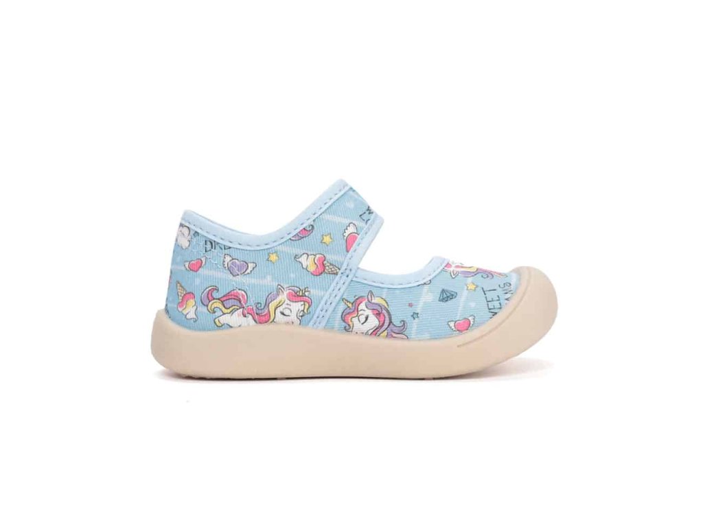 Kvalitná detská obuv z bavlneného plátna na gumovej podrážke, s vyberateľnou stielkou.
