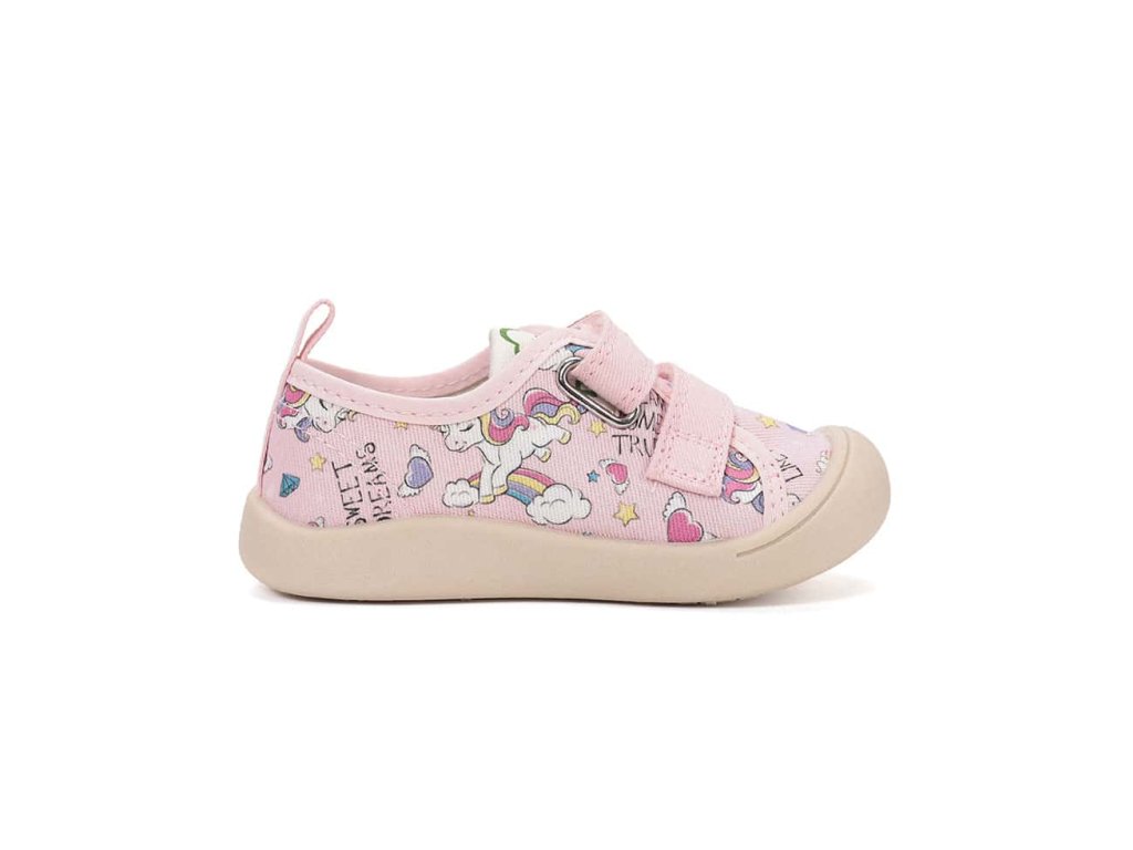 Kvalitná detská obuv z bavlneného plátna na gumovej podrážke, s vyberateľnou stielkou.