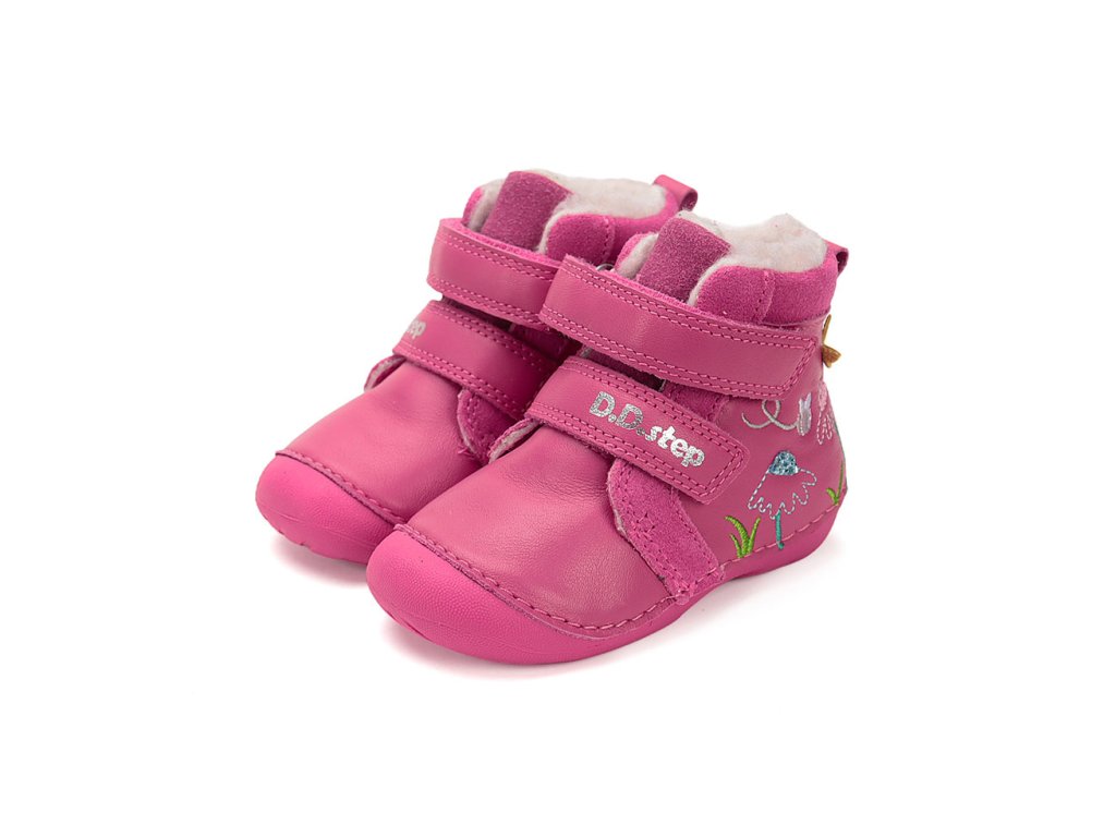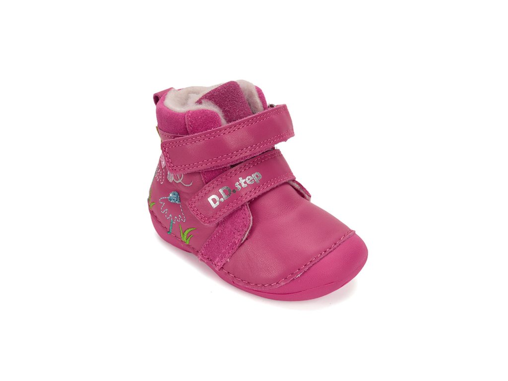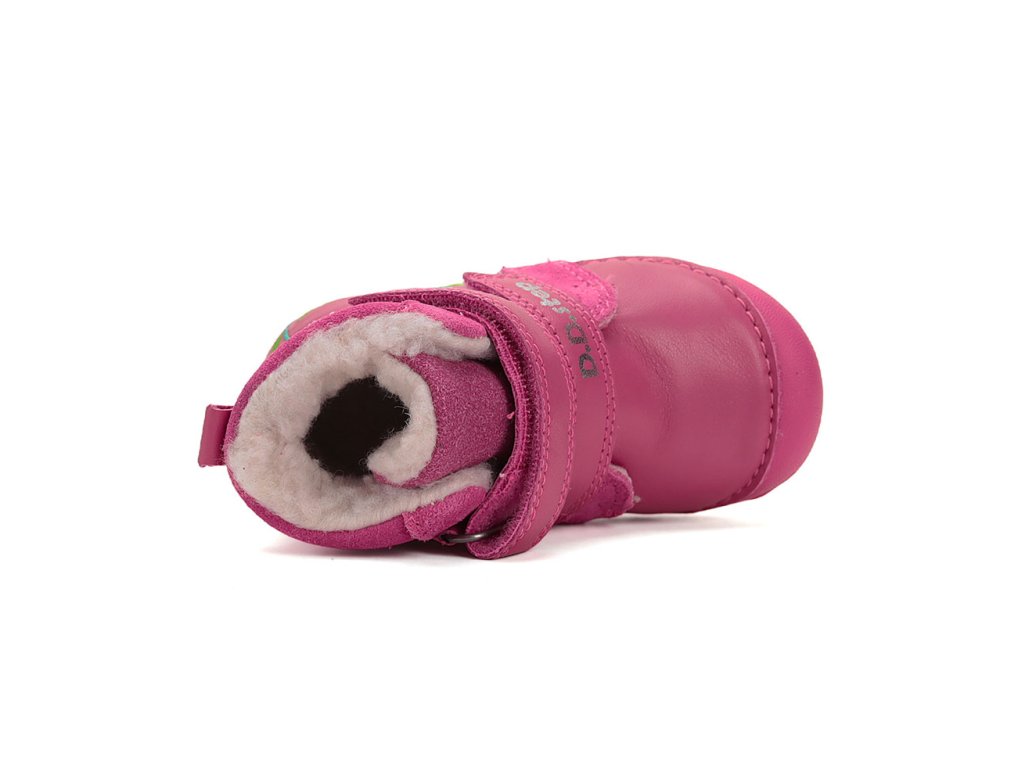 DD Step zimná detská obuv s podšívkou v hnedej farbe, s dekoráciou na boku.
