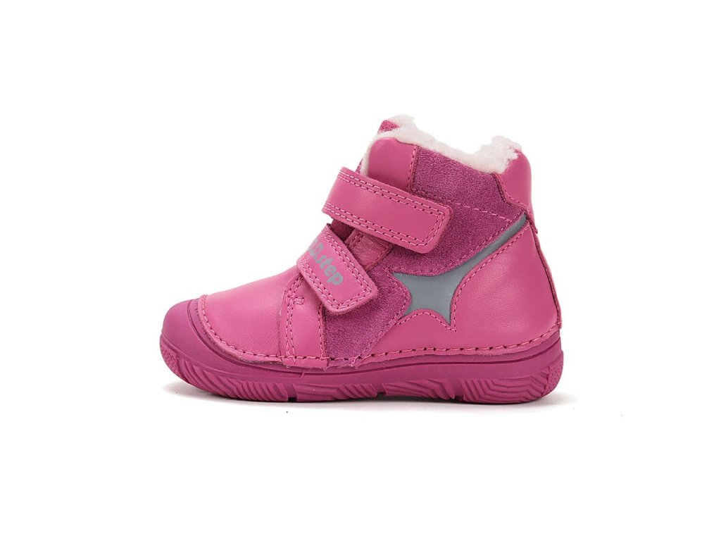 Detská zimná obuv DD Step s kožušinou v šedej farbe, s ozdobou na boku.