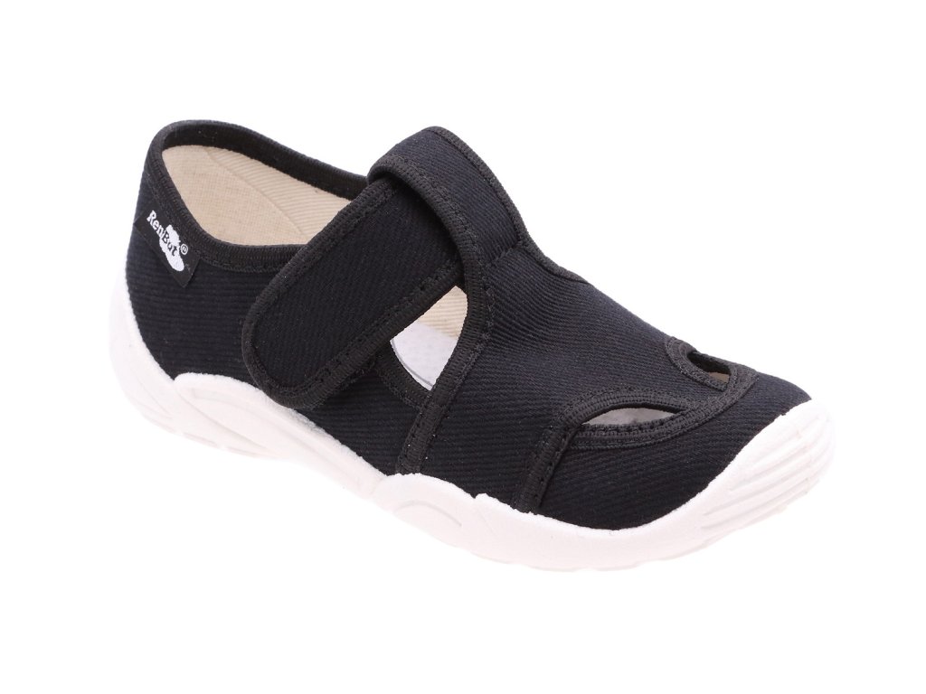 RENBUT - Detská textilná, profylaktická obuv z prírodnej bavlny . Vnútorné, profilované, antibakteriálne, vyrobené z prírodnej kože a latexovej peny obsahujúceho aktívne uhlie absorbujúce pot a pachy. Profilovaná, priedušná podrážka (ventilačný systém) vyrobená z pružného a ľahkého materiálu z PVC dokonale prenáša zaťaženie na zem a absorbuje nárazy. Zpevnený horný povrch stabilizuje chodidlo. Nastaviteľné zavesenie na suchý zips umožňuje presne prispôsobiť obuv rôznym tvarom nohy. Obuv z hľadiska konštrukcie, technológie a materiálov spĺňa požiadavky certifikátu "Zdravá noha"ocenené IPS v Krakove a ocenené špecialistami so znamienkom "Žltá noha" ideálne pre rozvoju správneho vývoja, fungovania a konštrukcie nohy dieťaťa.