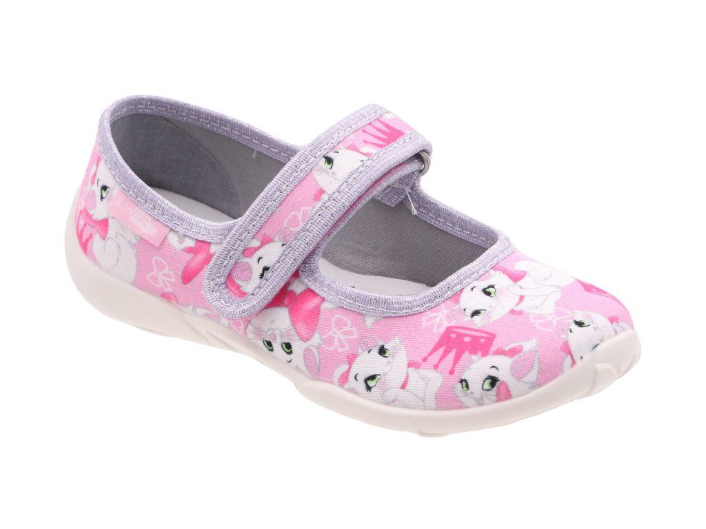 RENBUT - Detská textilná, profylaktická obuv z prírodnej bavlny . Vnútorné, profilované, antibakteriálne, vyrobené z prírodnej kože a latexovej peny obsahujúceho aktívne uhlie absorbujúce pot a pachy. Profilovaná, priedušná podrážka (ventilačný systém) vyrobená z pružného a ľahkého materiálu z PVC dokonale prenáša zaťaženie na zem a absorbuje nárazy. Zpevnený horný povrch stabilizuje chodidlo. Nastaviteľné zavesenie na suchý zips umožňuje presne prispôsobiť obuv rôznym tvarom nohy. Obuv z hľadiska konštrukcie, technológie a materiálov spĺňa požiadavky certifikátu "Zdravá noha"ocenené IPS v Krakove a ocenené špecialistami so znamienkom "Žltá noha" ako ideálne pre zabránenie rozvoju správneho vývoja, fungovania a konštrukcie nohy dieť